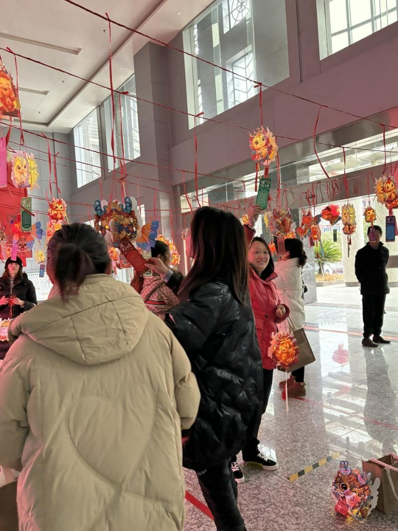 校园内彩灯摇曳,洋溢着节日的气氛,猜灯谜活动在学校一楼大厅拉开帷幕。现场设置了灯谜区,每个区都挂满了用彩色纸条书写的灯谜,吸引了众多教职工前来挑战。参与者们或三五成群,或独自思索,每破解一谜,脸上都洋溢着成功的喜悦。