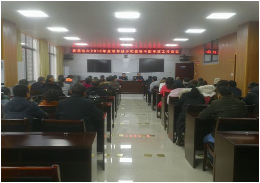 12月20日,娄底电大召开2018年度领导班子与领导干部考核工作大会。会议由党委书记李国平主持。市委统战部常务副部长王美成率队进行考核。学校党政领导班子和全体教职员工参加了会议。